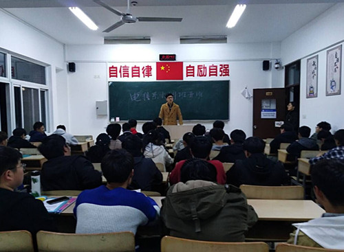 提优班于3月18日晚六点三十分在6110教室正式开班。该系副主任祝佳俊在开课前要求大家认真参加学习,强化基础知识,为升本、转本打好坚实的基础,同时也要逐步养成良好的学习习惯,明确自身目标,提升内在自信与学习动力。