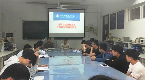 5月13日中午,电子信息技术系举办“工匠精神”青春思辨会。院团委书记祖国、电子与信息技术系副主任祝佳俊、院团委副书记黄晓帆和电子与信息技术系近30名学生骨干参加了此次活动。