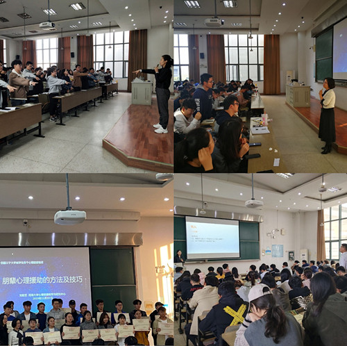 培训班在南京医科大学王志琳老师主持的开班仪式中拉开序幕。紧接着由南京航空航天大学杨雪花教授为同学们详细介绍了一些常见心理疾病的症状和简单的应对措施;东南大学邓旭阳老师通过现场表演心理情景剧的方式,使同学们更清楚地认识到如何在日常生活中释放负面情绪;金陵科技学院刘畅老师和江苏经贸职业技术学院王珊老师从班级心理委员如何帮助他人和成就自我两方面展开了详细的讨论;南京交通职业技术学院韩雪老师以现场演练的方式为大家详细阐述了基于萨提亚沟通模式的心理委员谈话技巧;南京工业大学陈弈江老师结合心理量表与投射测试在大学生心理健康中的应用给同学们分析了西方心理量表在中国应用中的一些不可行性;南京信息工程大学钱春霞老师为同学们带来了一场解压盛宴,让同学们明白了如何科学地释放自己的压力;最后,河海大学刘取芝老师围绕“朋辈心理援助技能和心理工作方法”为同学们做了重点介绍,同学们深刻掌握了在帮助身边同学解决心理问题时所需要的系列技巧,增加了心理委员们的“实战”应对能力。