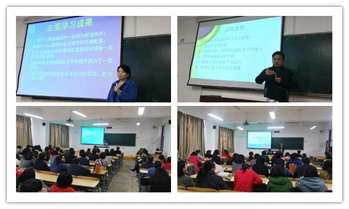 参加培训的7名教师代表,精心准备,凝练成果,通过PPT先后介绍了学习项目、学习内容,分享了学习体会、学习收获。他们从学科前沿知识到专业建设应紧跟时代发展;从信息化教学建设到教学能力提升;从“行业大咖”到“朋友圈”与他们互通有无,共同进步;从更新职业教育理念到提升教书育人的责任感等方面进行了全面的交流分享,为大家呈现培训所听、所看、所思、所悟,让参会人员开阔了视野、收获了新知。