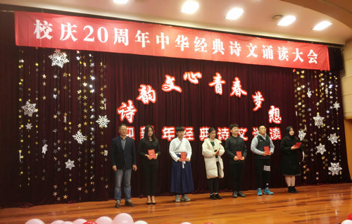 12月25日下午,av在线 举行“诗韵文心 青春梦想”中华经典诗文诵读大会。国家级普通话水平测试员、电视台资深主播周敏燕教授,学生处处长李秀成、副处长祖国及基础教育系汪小艳副教授担任评委。基础教育系主任杨卫东出席活动,各系学生代表到场观摩。