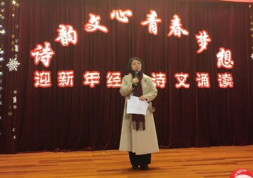 在全部选手阅读分享结束后,周敏燕教授登台给全场师生带来了一首精彩的诗朗诵《做一个最好的你》,并对整场活动做专业点评。她首先称赞参加诵读活动的同学具有较好的普通话语音基础,具有优秀朗诵者的潜质,其次说到朗诵是对作品的再创造,指导同学要将所朗诵的作品用肢体、表情传递给观众,特别强调服装与仪表仪态的合适度,强调对音调调值高低的把握与稳定性,强调合诵者之间的气口衔接,希望同学们赋予朗诵作品更加鲜活的生命力。