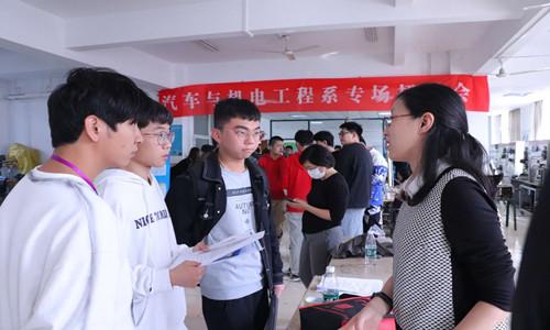 金秋十月是实习生求职应聘的高峰期。10月22日下午,汽车与机电工程系为全体即将步入实习岗位的大三学生举办了招聘会。