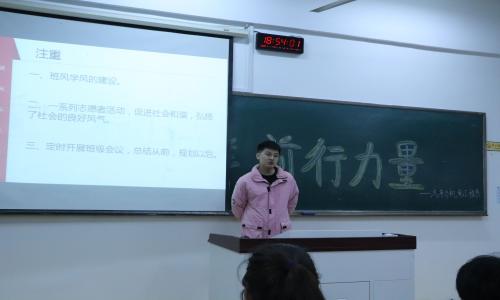宣讲活动的开始,演讲的大三学生通过PPT展示出他们大学三年以来取得的学业成绩、所获得的荣誉和学生工作经历等。看着学长们傲人的学业成绩,满书桌的荣誉证书,丰富扎实的学生工作经历,同学们由衷地佩服这些优秀的学长。章彬楚从学习方式、压力的解方式等着重介绍大学的生活目标和意义,向同学们讲述如何度过一个充实快乐的大学,希望大一新生能够珍惜大学时光,及早做好职业生涯规划,准确把握好自己的人生。学生王海淼鼓励同学们道,“你有多努力,就会收获多少。”一些成绩平平的同学也受到了感染,更加坚信自己的目标和初心。