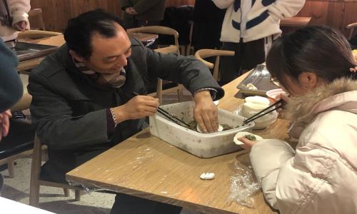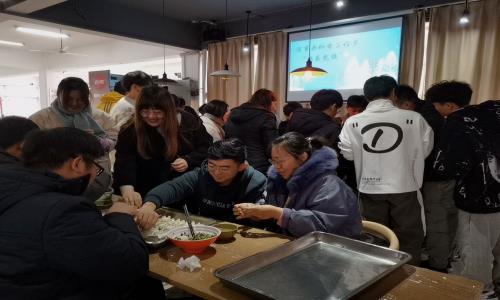 下午14:30活动准时开始,师生们坐在食堂固定位置开始准备大展身手。数名学生代表围坐在副主任朱翔身边,亲手实践包着饺子并设计成各种形状,陈芸老师、孙烨老师组织教学生如何擀面皮、包饺子。在包饺子的同时,大家围绕学习、生活、工作等话题不时交淡着,师生之间的感情也随之加深。终于在大家的不解努力下,一盘盘热气腾腾的饺子在大家的期待中被端上了餐桌,吃着大家自己包的香喷喷的饺子,大家感受到了青春的快乐和集体的温暖。