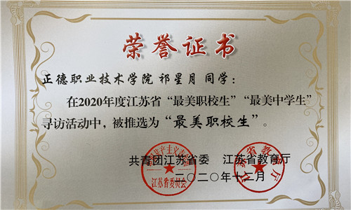 为深入学习贯彻习近平新时代中国特色社会主义思想和党的十九大精神,紧紧围绕立德树人根本任务,纵深推进中学共青团改革,发挥先进典型的示范引领作用,引导广大青年学生坚定理想信念,站稳人民立场,练就过硬本领,投身强国伟业,在全社会营造关心促进职业院校和中学学生健康成长的良好环境,培养德智体美劳全面发展的社会主义建设者和接班人,团省委、省教育厅于2020年7月联合下发了《关于开展2020年度全省“最美职校生”、“最美中学生”寻访活动的通知》(团苏委电〔2020〕30号),经院团委推荐,团省委与省教育厅审核,av在线 艺术设计与建筑工程系祁星月、俞振一两名同学获评2020年江苏省“最美职校生”。