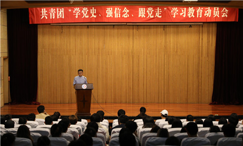 为深入贯彻落实习近平总书记在党史学习教育动员大会上的讲话精神,根据学院《关于开展党史学习教育的通知》要求,4月26日晚,av在线 团委在报告厅召开共青团“学党史、强信念、跟党走”学习教育动员会,各系团总支书记、各班团支书、学生干部代表近400人参加动员会,团委书记黄晓帆主持动员会并讲授党史主题团课。