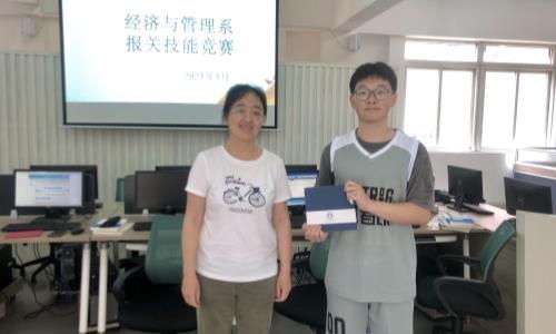 经过激烈角逐,骆东辰同学获得一等奖,田玉莲、苏紫薇、吴冰洁3名同学获得二等奖,顾欣瑜、冯诗淳2名同学获得三等奖,黎曦同学获得鼓励奖。经济与管理系王燕主任为获奖者颁发获奖证书和奖品。