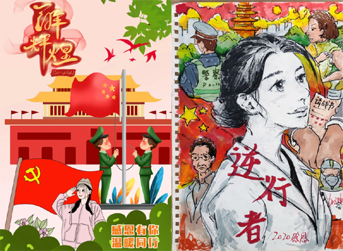 经过院内专业教师的最终评审,该系2020级余紫欣、陈果同学创作的《感谢有你,温暖同行》、2019级左傲香同学的《启航》两幅作品荣获一等奖;阴乙淼《建党百年主题画》、沈洁《感恩逆行者》、包涵《百年辉煌》荣获二等奖;陈秋彤、周晨、徐蓉蓉、王璐、姚晓琳五位同学的作品荣获三等奖。