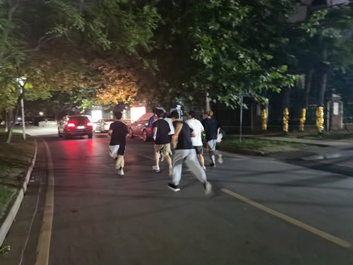 活动伊始,参加活动的同学们依次在学院北门排队,领取荧光棒,按照“KEEP” (自由运动场) APP上的点位开始跑步。