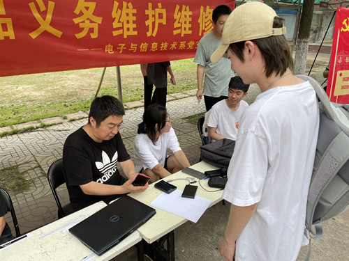 重温红色党史,服务全院师生。6月10日,电子与信息技术系党支部扎实开展“我为师生办实事”实践活动——电子产品义务维护维修活动。