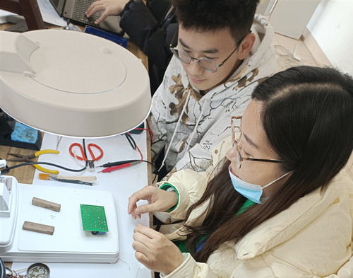 王丽首先检查了学生平时练习焊接的电路板,指出当前存在的焊接问题,对这些问题一一做出了纠正,并正确示范。随后给同学们讲解了焊接工艺,并展示了高超的焊接手法,分享了她多年参赛的心得和经验,同学们听后受益匪浅。最后,在规定的时间内要求学生焊接相应的功能板,对焊接功能、操作标准、焊接技术进行打分 ,并指出了每位同学在日后需要加强训练的方向。