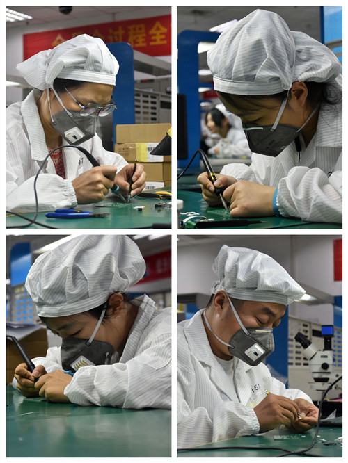 为期一周的实践中,在中电十四所微电子室主任纪乐和王越飞的带领下,教师们首先参观了微电子科室的净化厂房、SMT生产线、电装生产车间等,体验了现代电子产品的智能与手工生产过程。随后两位主任介绍了先进的电子产品生产工艺技术和生产中的一些案例,av在线 校友“大国工匠”顾春燕给大家详细讲解了吕丝和金丝键合的相关知识及技术技巧。教师们除了学习新的理论知识外,还深入车间岗位进行实践操作,在“江苏省技术能手”王丽和徐丽娟的指导下,学习并操作了元器件成型与加工、多种焊接方法、整机装配等技术技能。