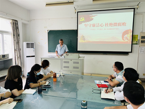 根据年度支部党建工作计划,纪检委员王高山给大家上了一堂廉洁教育微党课。大家普遍认识到:我们绝不能对党风廉政建设以及反腐败工作有丝毫的松懈和麻痹,必须居安思危、防患于未然,党员同志要自省、自警、自重,筑牢廉洁思想防线,严防自身腐败堕落。