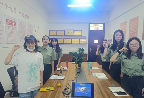 经济与管理系辅导员倪冰慧领誓,全体新入职辅导员举起右手,许下了身为一名高校辅导员庄严誓词。