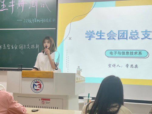 随着新学期的开始,电子与信息技术系迎来了一批充满青春气息的2022级新生。为了让新生们在学校里能学到更多的知识,同时保证电信系团总支、学生会不断有新鲜血液注入。电子与信息技术系于9月27日19时在1103教室进行了团总支、学生会招新工作。