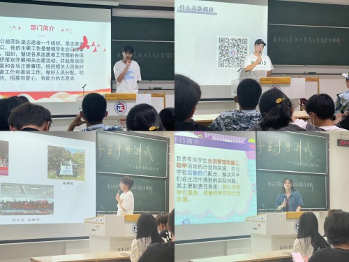 接着,电信系团总支、学生会各部门部长依次介绍部门职责、部门特色和招新要求,他们对新生给予了殷切期望,希望新生们积极报名,同时也表示想要挖掘出电信系新生中能力强、有服务精神的同学们,使其充分发挥自己的潜能。