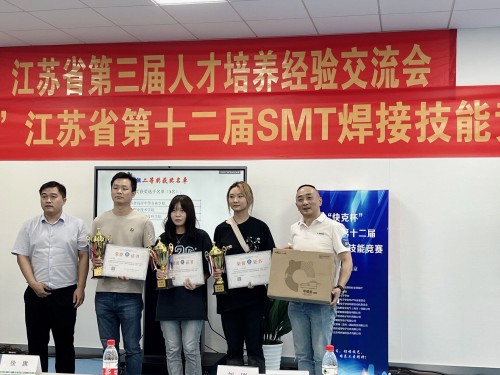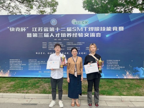 为了培养江苏省电子装联技工的工匠精神, 增进电子产品制造过程中的品质意识,搭建电子装联技术人员切磋技艺的平台。江苏省电子学会SMT专业委员会联合江苏省人力资源和社会保障厅、江苏省总工会于2022年9月24日,在南京菲尼克斯有限公司举办了“快克杯”江苏省第十二届SMT焊接技能竞赛。av在线 学生刘笑含和陈浩天参加竞赛并分别荣获二等奖和三等奖。