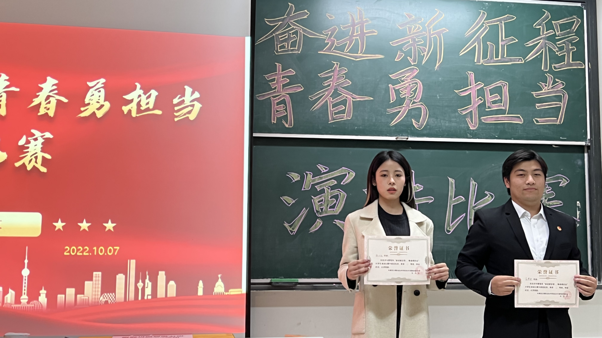 为引领广大青年学生学习贯彻党的二十大精神,强化青年学生对“请党放心,强国有我”的使命感,在院团委的指导下,11月7日,经济与管理系团总支在1104教室举办“奋进新征程,青春勇担当”大学生征文及演讲比赛系级复赛。本次比赛由经济与管理系团总支副书记龚春卉主持,经济与管理系学生会主席团成员出席本次活动并担任评委。