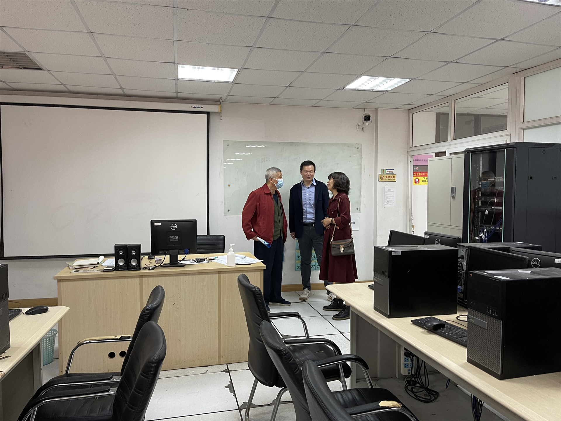 讲座后,系主任王高山向王家波一行介绍了电信系专业设置、课程建设、专业特色发展等基本情况,带领他们参观了实验实训室、文化走廊等。双方就校企合作、产教融合、工学结合等问题进行了深度探讨和交流。