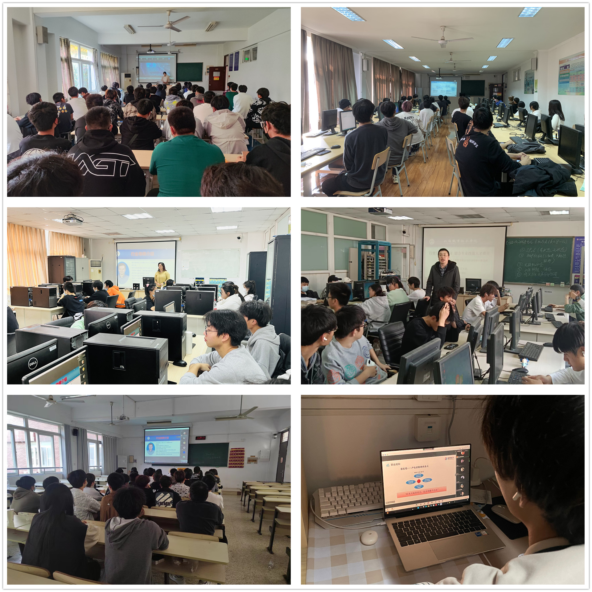 本次讲座采用了线上线下相结合的方式,在6206教室设立线下主会场,各专业负责人在6208、6405-1、6405-2、2204、6508教室及学生宿舍面向各专业学生设立腾讯会议线上直播分会场。