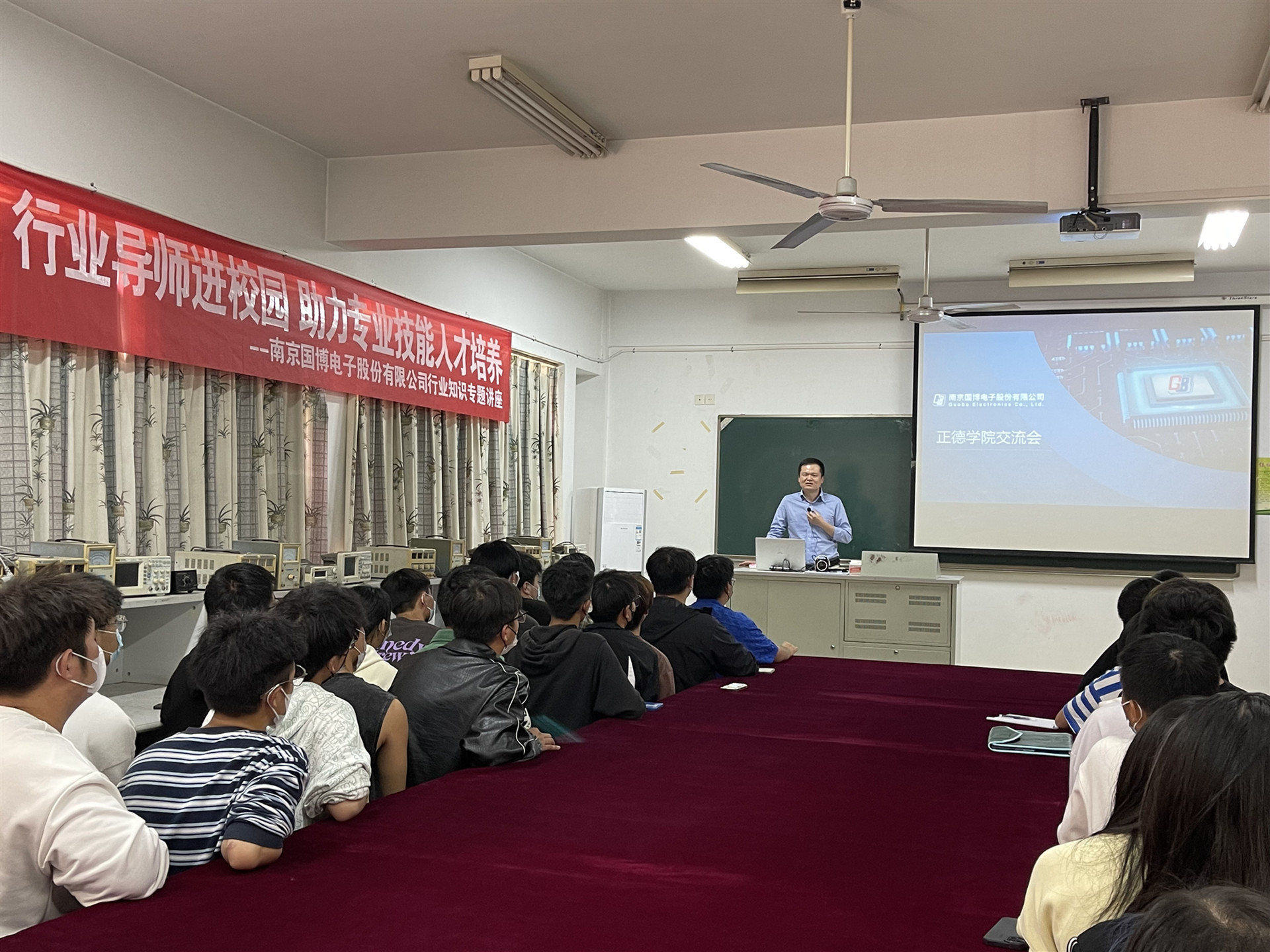 11月10日下午,南京国博电子股份有限公司人力资源部总经理王家波受电子与信息技术系邀请,来av在线 面向2022级大一新生开展了一次行业知识专题讲座,助力av在线 专业技能人才培养。