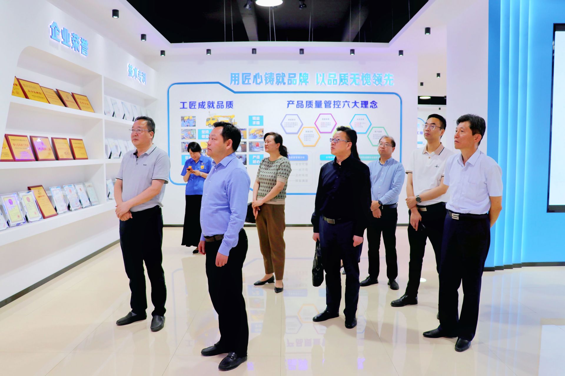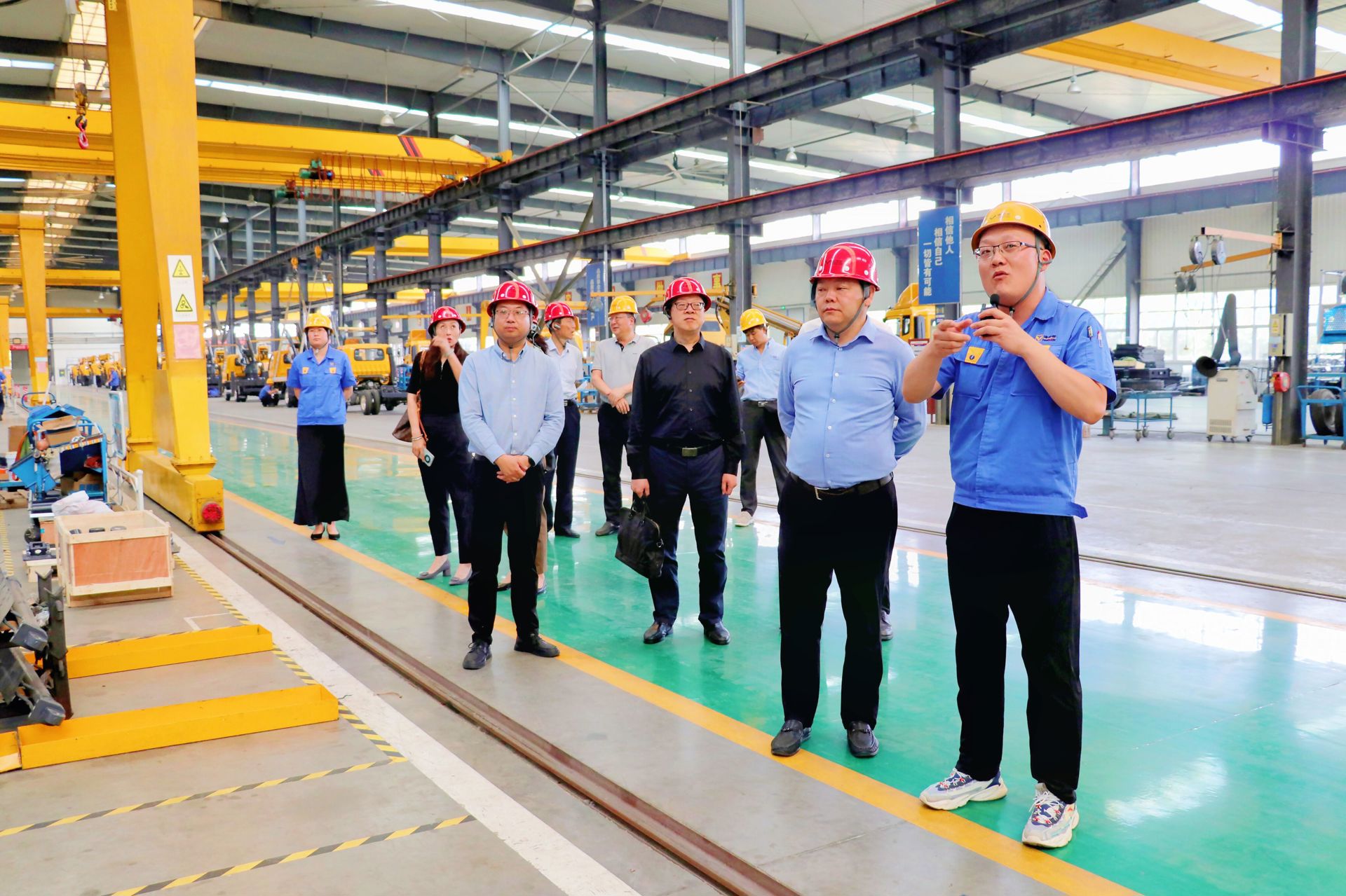 会后,孙永荣一行在高鹏等陪同下参观了海伦哲公司文化展厅、总装车间、焊接车间以及加工车间等。