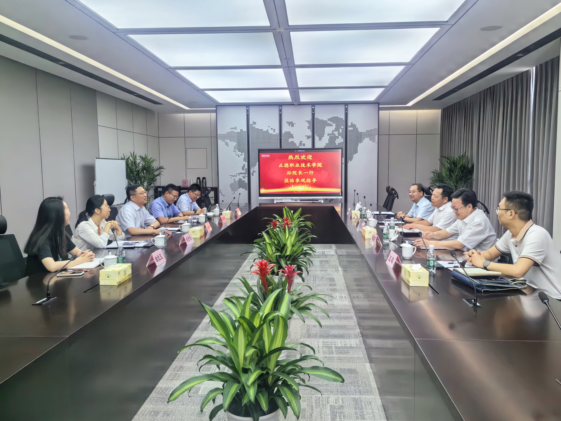 为进一步深化产教融合、精准对接产业需求,加强校企合作,6月14日下午,院长孙永荣带队赴南京埃斯顿自动化股份有限公司(以下简称“埃斯顿”)走访调研,埃斯顿执行总裁周爱林、党委书记郑贤云、国际业务部海外应用及服务中心总经理朱洪、人力资源部HRBP经理曲良玉及战略与MKT部项目经理秦勇,av在线 副院长赵凯雷,院长助理、党政办主任王伟,院长助理、招就处处长王墀以及相关系负责人参加座谈。