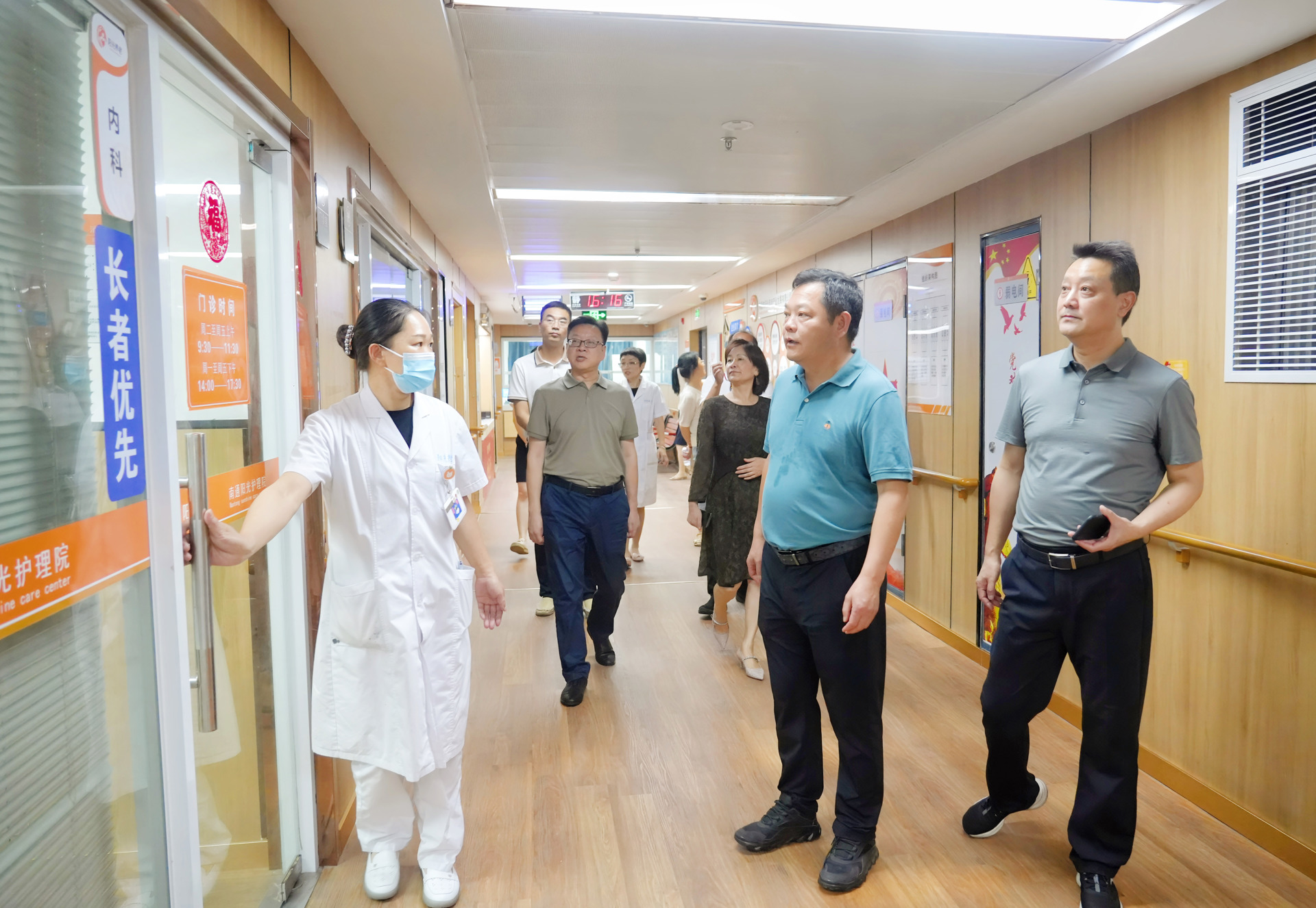 会前,孙永荣一行在王春等领导陪同下,详细了解了企业的运营管理、服务特色、人员配置等概况,并参观了阳光老年公寓家庭式套房、医养结合型护理院,实地感受机构内入住长者的生活空间、活动空间、康复养护、医疗护理等设施及服务。