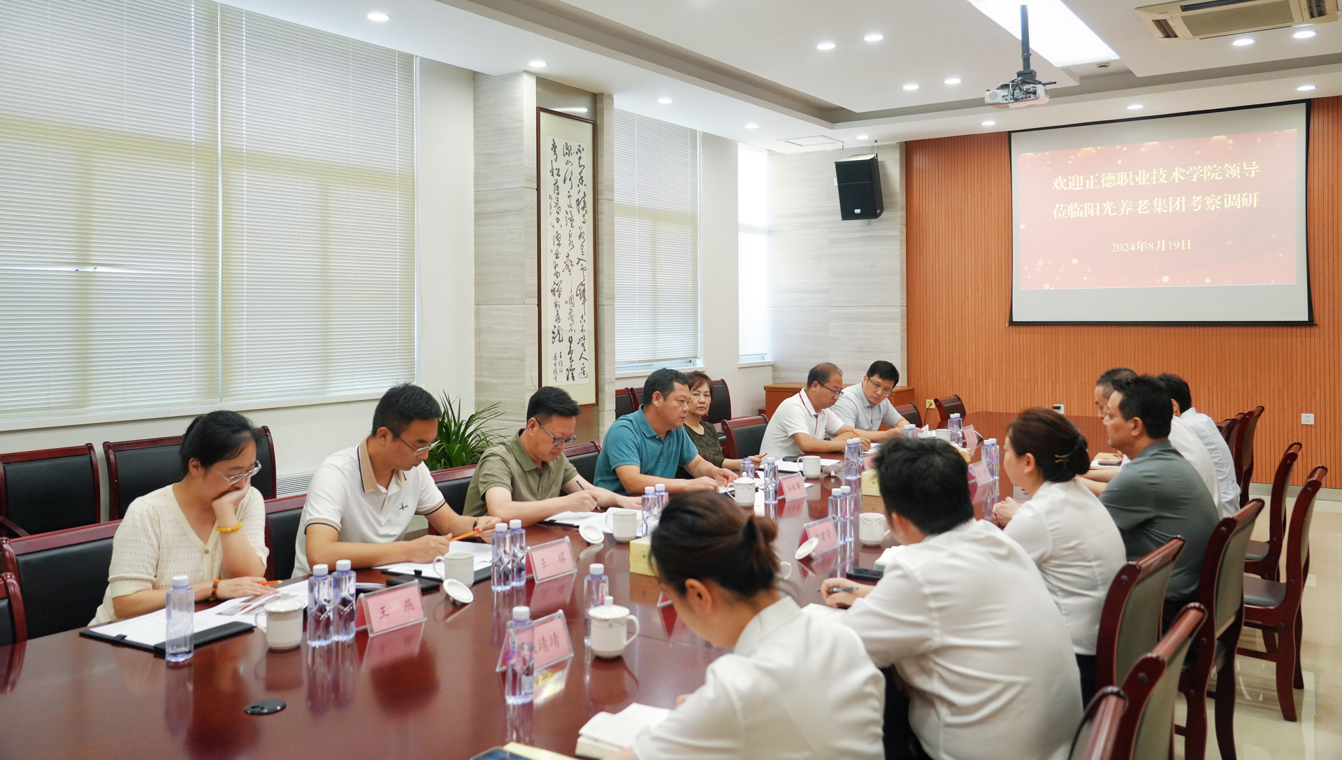 8月19日,院长孙永荣带队赴南通市阳光养老产业集团考察调研,副院长赵宇、赵凯雷,院长助理、党政办主任王伟,院长助理、招就处处长王墀以及相关部门负责人陪同调研交流。南通市房投集团党委副书记、总经理,阳光养老集团党支部书记、董事长王春,阳光养老集团总经理尹建芳,常务副总高理、党支部副书记黄凯、副总经理童小燕等领导热情接待了av在线 一行。