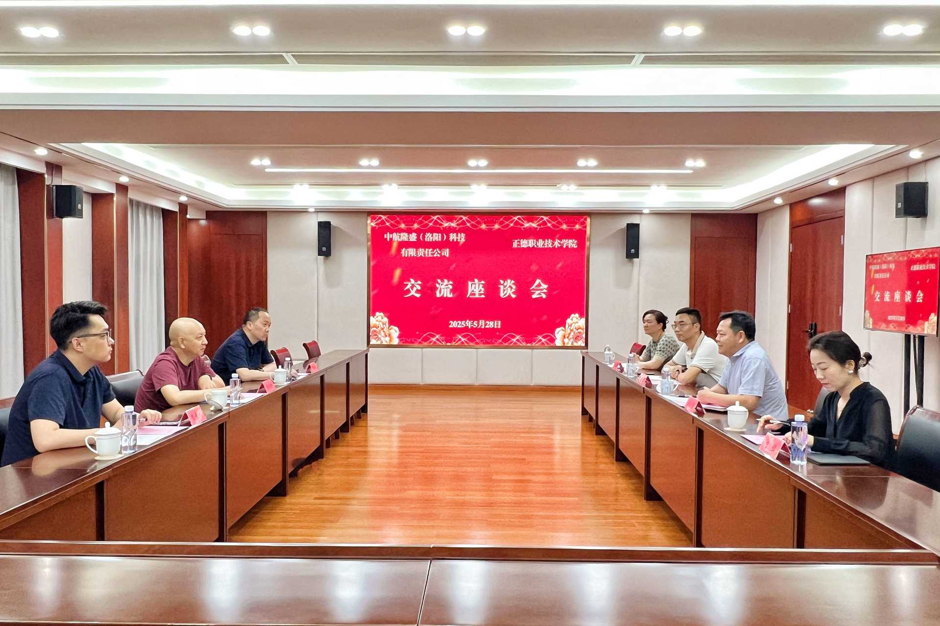 5月28日上午,中航隆盛(洛阳)科技有限责任公司(以下简称“隆盛公司”)董事长杨晓峰、副总经理王俊舟、计划财务部部长陈佳良一行三人来av在线 交流洽谈。院长孙永荣,院长助理、招生就业处处长王墀以及相关系负责人参加交流活动。