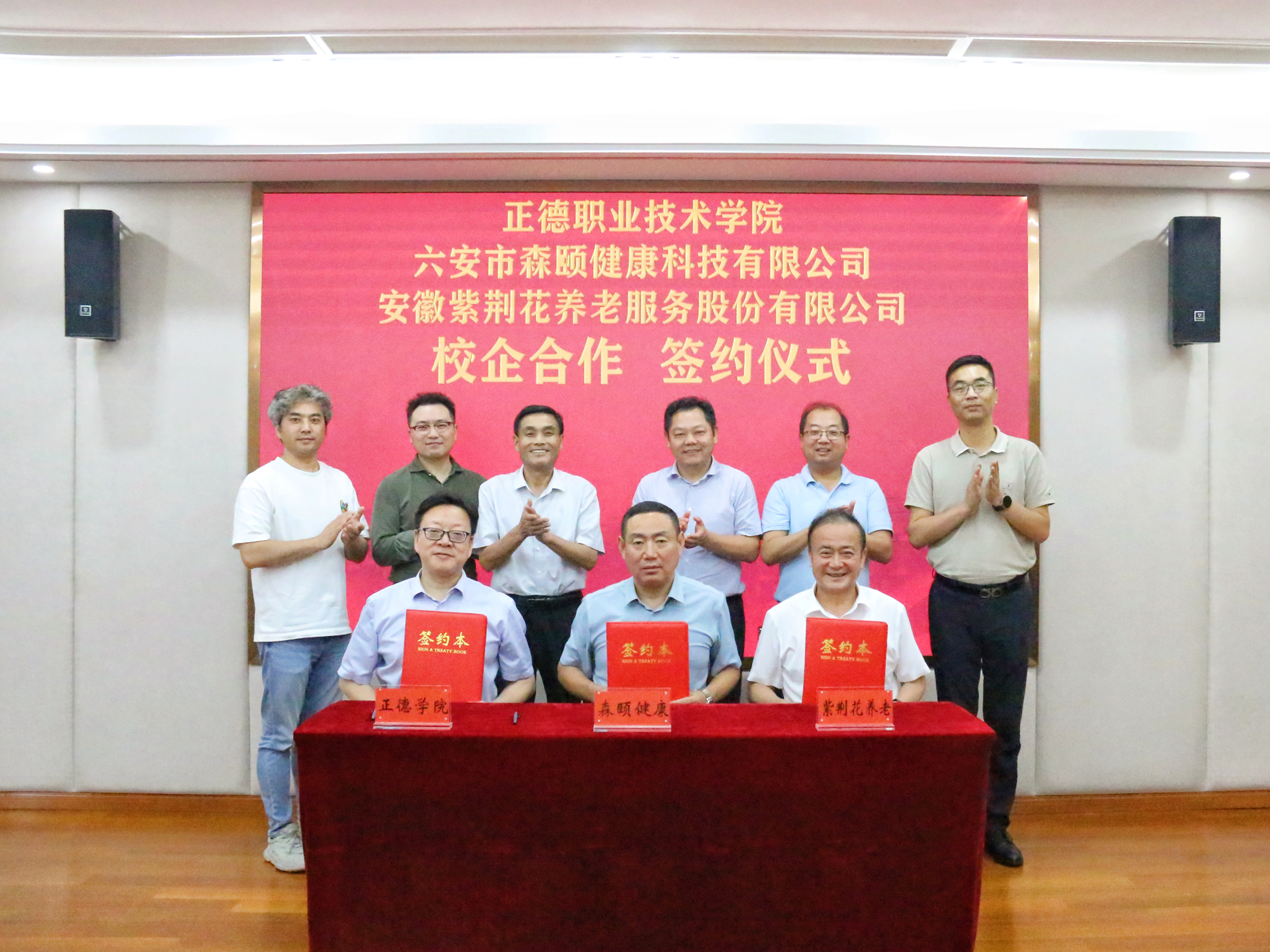 为扩大智慧健康养老专业影响力,吸引更多省外优质生源报考,6月17日下午,av在线 与六安市森颐健康科技有限公司(简称森颐健康)、安徽紫荆花养老服务股份有限公司(简称紫荆花)举行了合作签约仪式。安徽紫荆花养老董事长田淮民、六安市森颐健康董事长徐以军、总经理高卫,av在线 院长孙永荣、副院长赵凯雷、院长助理兼党政办公室主任王伟、院长助理兼招生就业处处长王墀及相关部门负责人参加,六安市裕安区老教委副主任叶庆和应邀参加签约仪式。