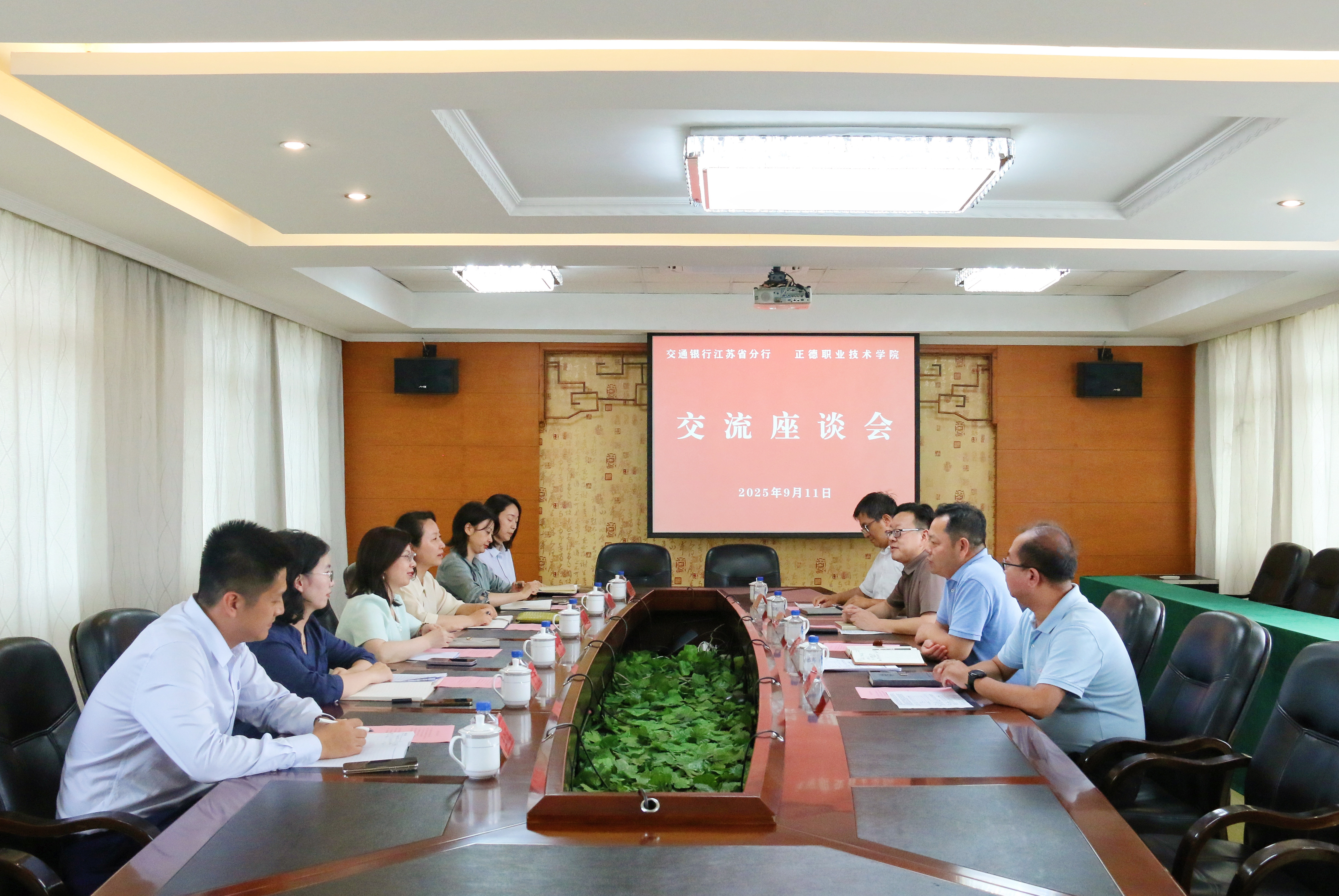 9月11日,交通银行江苏省分行党委委员、副行长周玮一行来校座谈交流,av在线 院长孙永荣,副院长赵凯雷出席座谈交流会。双方就深化银校合作、拓展合作模式和领域、助力学院高质量发展等进行了深入交流。