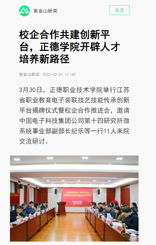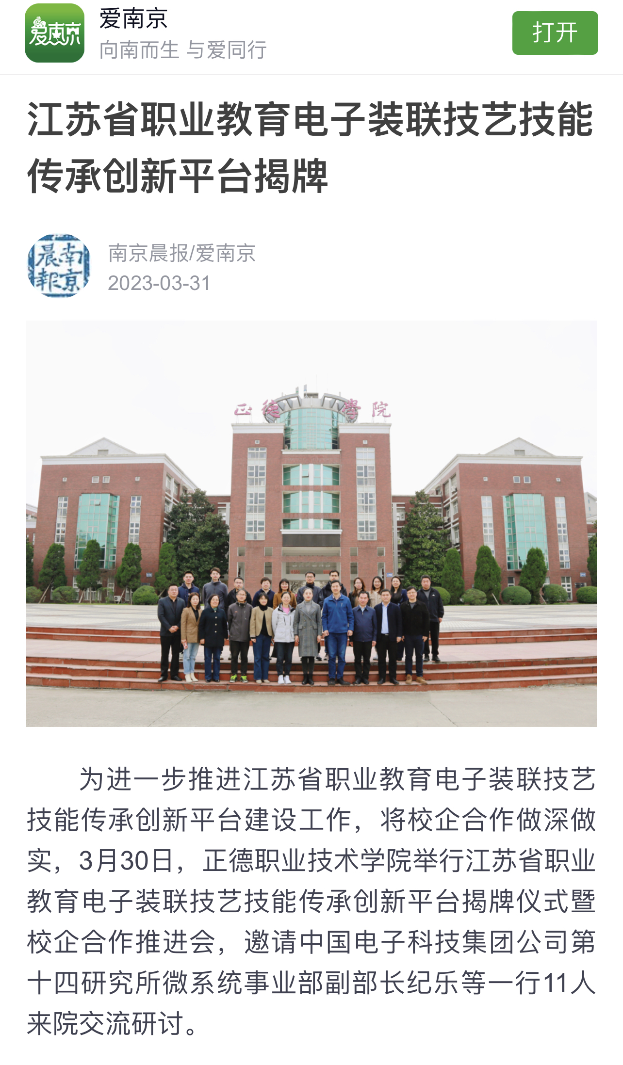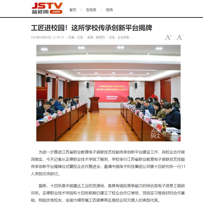 【荔枝网等】江苏省职业教育电子装联技艺技能传承创新平台揭牌
