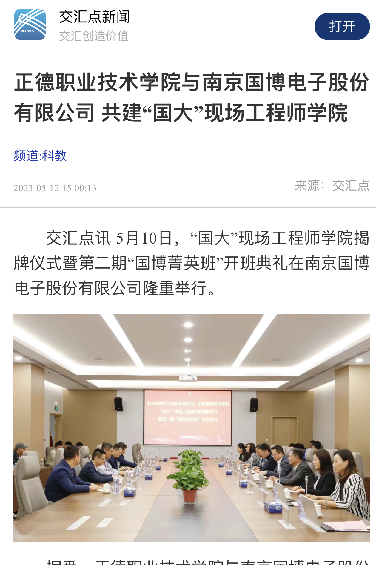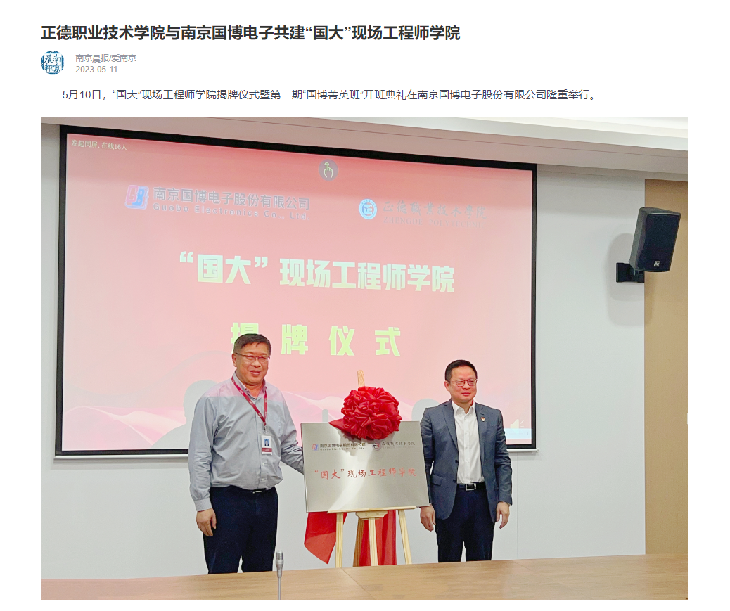 【交汇点新闻等】av在线 与南京国博电子股份有限公司共建“国大”现场工程师学院