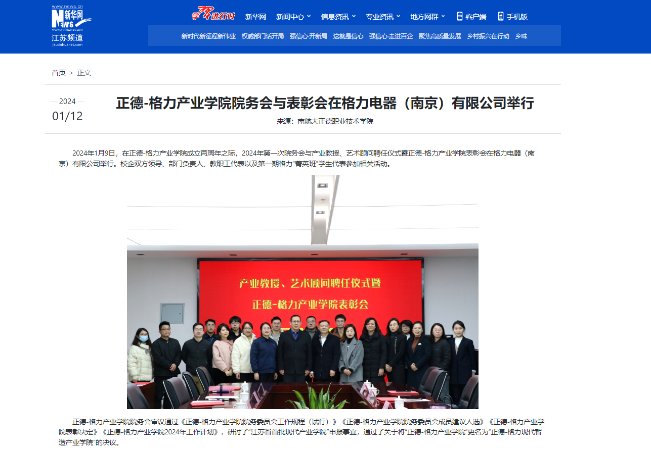 【新华网】正德-格力产业学院院务会与表彰会在格力电器(南京)有限公司举行