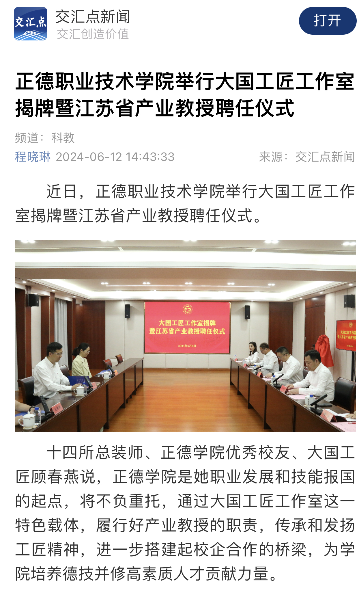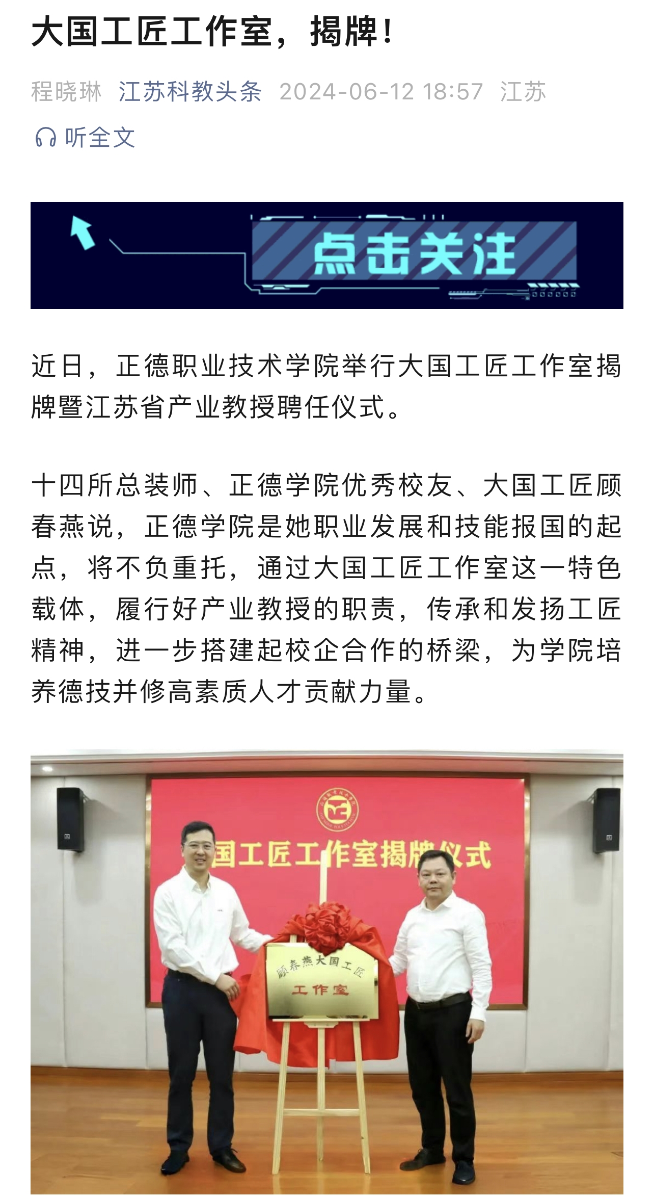 【交汇点新闻等】av在线 举行大国工匠工作室揭牌暨江苏省产业教授聘任仪式