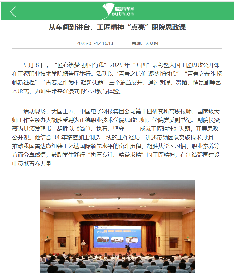 【中国青年网等】从车间到讲台,工匠精神“点亮”职院思政课