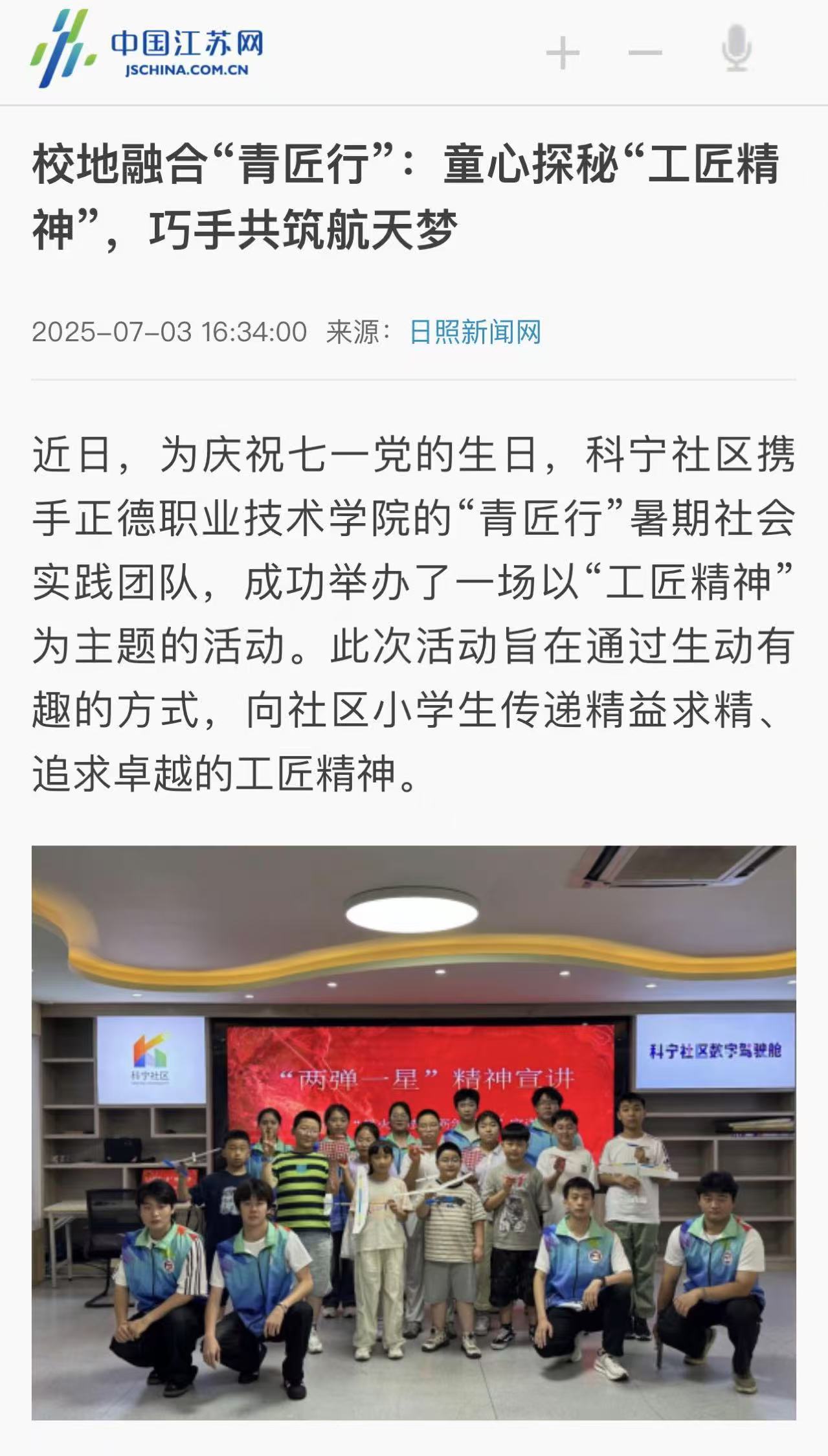 【中国江苏网】校地融合“青匠行”:童心探秘“工匠精神”,巧手共筑航天梦